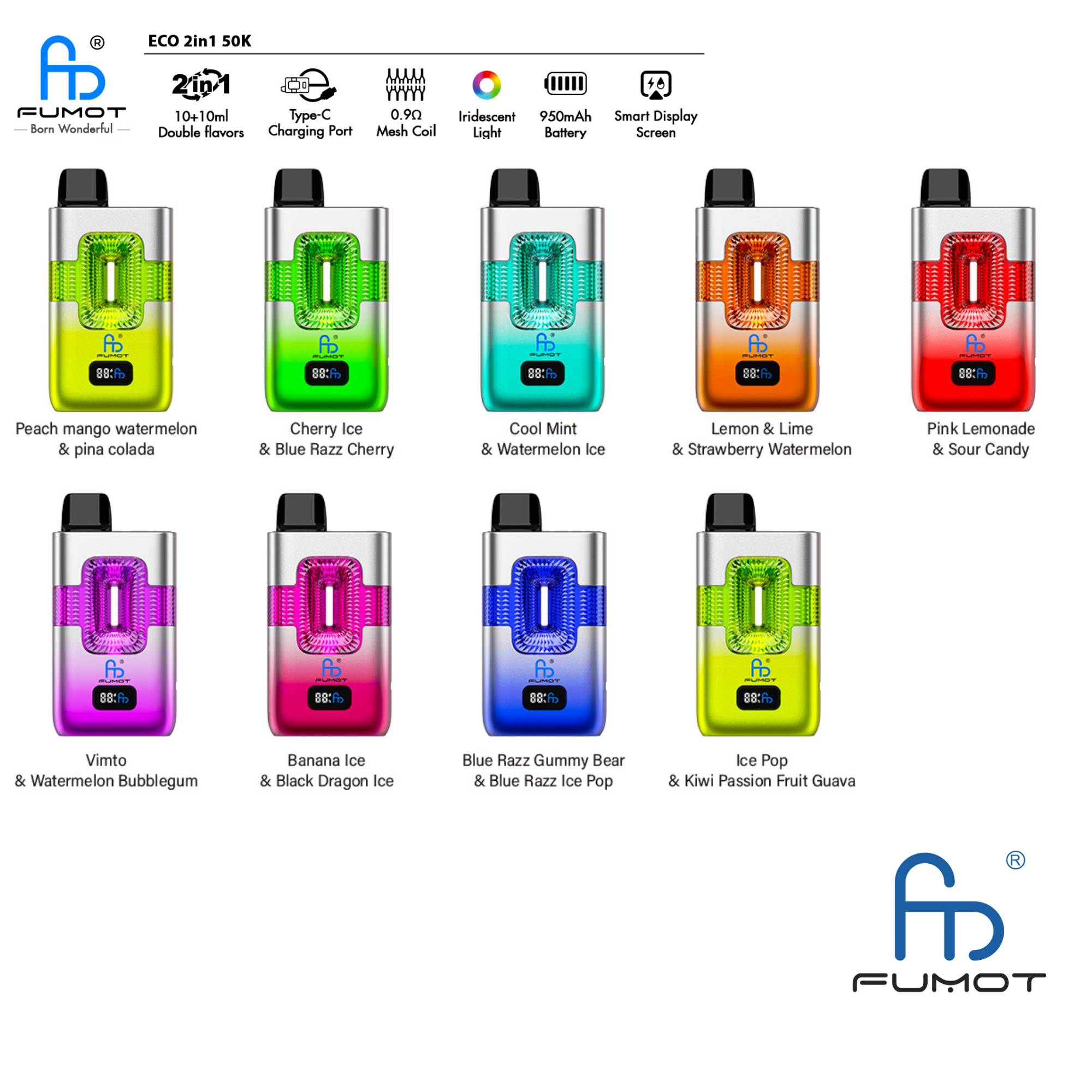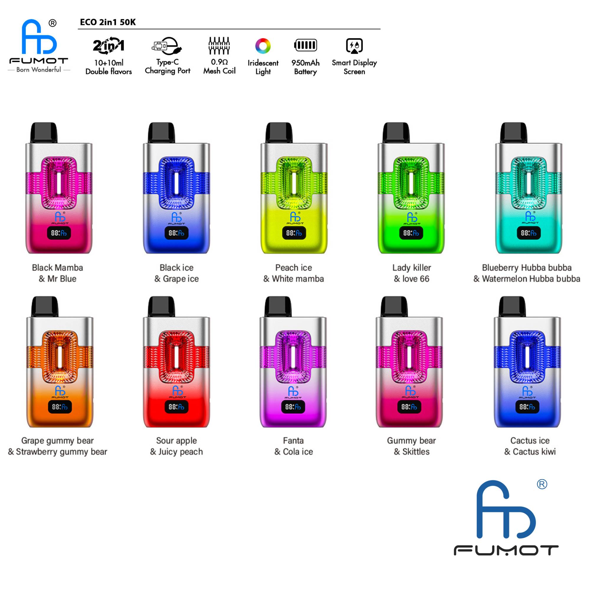 🔥Fumot ECO 2in1 50K – Einweg Vape – 2 % Nikotin – Doppelter Geschmack